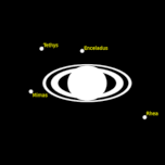 Les positions des satellites sont approximatives. Elles utilisent une méthode qui induit une dérive progressive des satellites. Dernière mise à jour des positions : 2003.